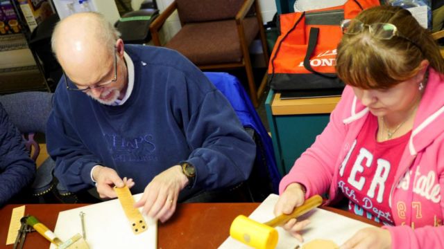 Today Lauch Harrison (ACSCL) run the Hinged Leather Box workshop.