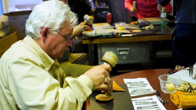 Supplied loaner tools – head knife, diamond awls, stitch clamps, round and half round punches, spoke shaves, french edgers, rawhide mauls.